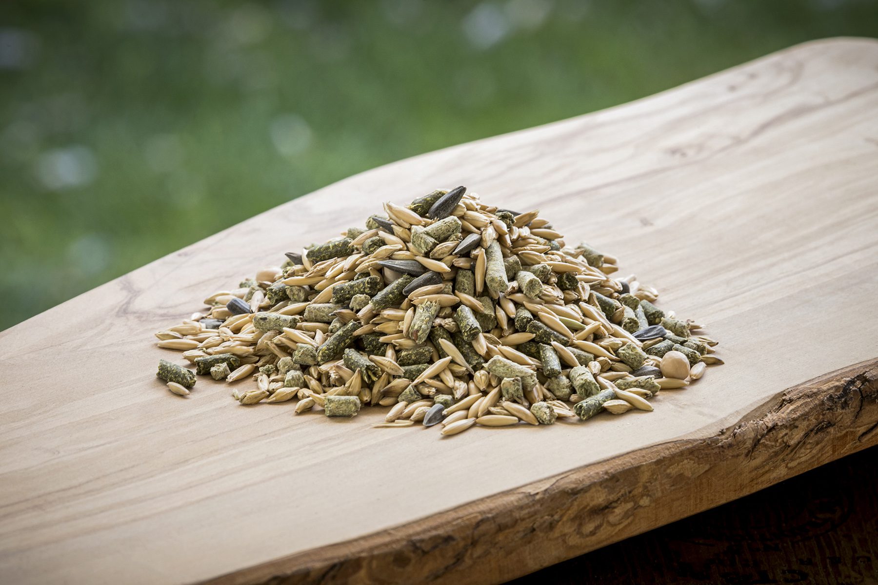 Organic Oats, whole, Organic Barley, whole, Organic Sun-dried Alfalfa Pellets, Organic Coconut Meal, Organic Peas, Organic Sunflower Seeds, whole, Organic Sesame Meal, Organic Carrot Pellets, Organic Flaxseed, Monocalcium Phosphate, Ground Limestone, Magnesium Oxide, Salt, Sodium Aluminosilicate, Diatomaceous Earth, Hydrated Sodium Calcium Aluminosilicate, Organic Kelp, dried, Saccharomyces cerevisiae yeast, Organic Flavors(Garlic, Thyme, Anise Oil, Cinnamon bark, Ceylon, Anise, Rosemary Oil), Manganese Sulfate, Zinc Sulfate, d-alpha Tocopheryl Acetate, Copper Sulfate, Sodium Selenite, Biotin, Thiamine Mononitrate, Riboflavin Supplement, Vitamin A Supplement, Vitamin D3 Supplement.
