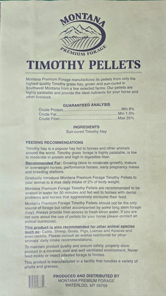 - 1/4″ pellets are the perfect size for horses, mules, cows and calves, llamas, alpacas, sheep and goats and even pig
