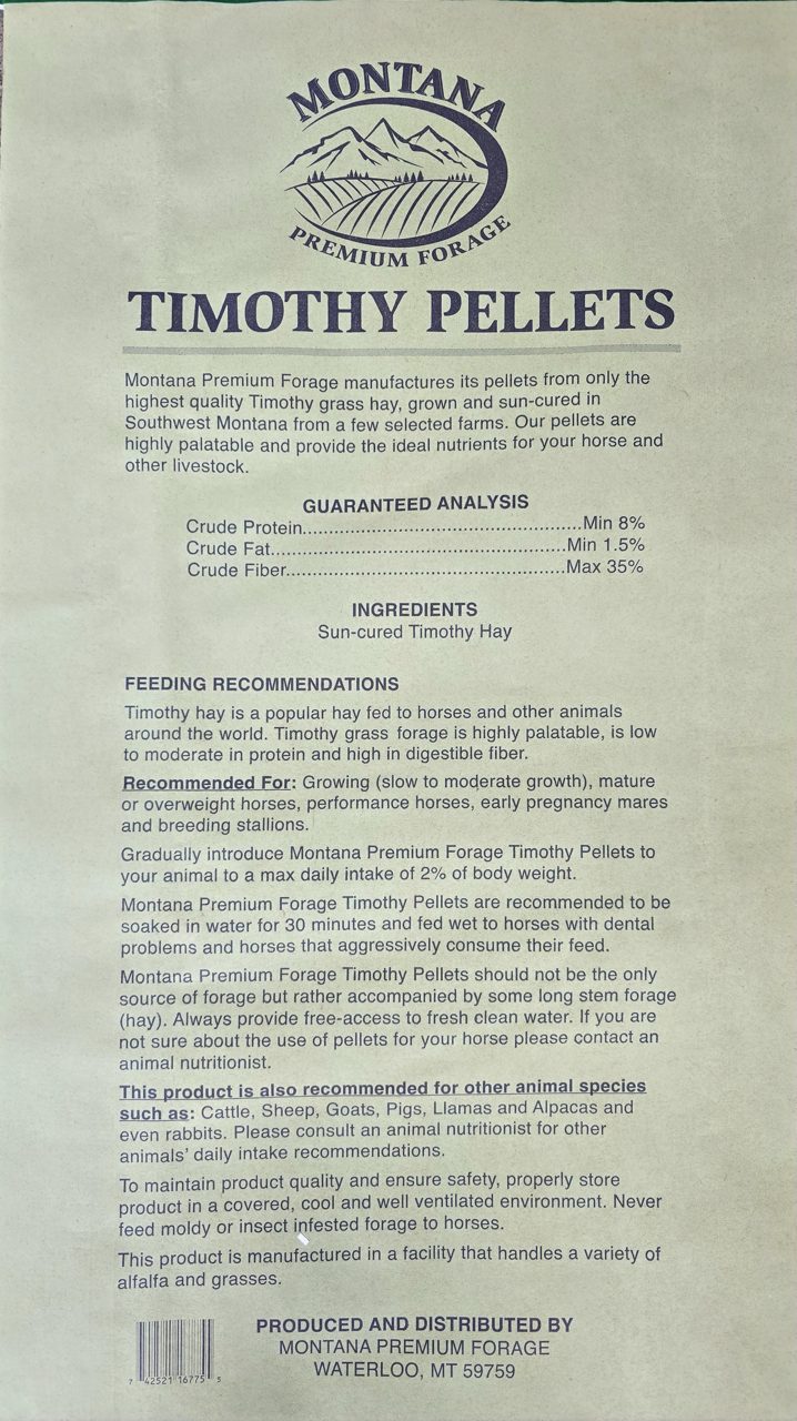 Montana Premium Forage sells premium hay pellets in stores across Montana. We use no binders or additives and nothing but all-natural ingredients when making our hay pellets. Quality is our number one concern, so you can count on us to provide hay pellets that your horses will thrive on.